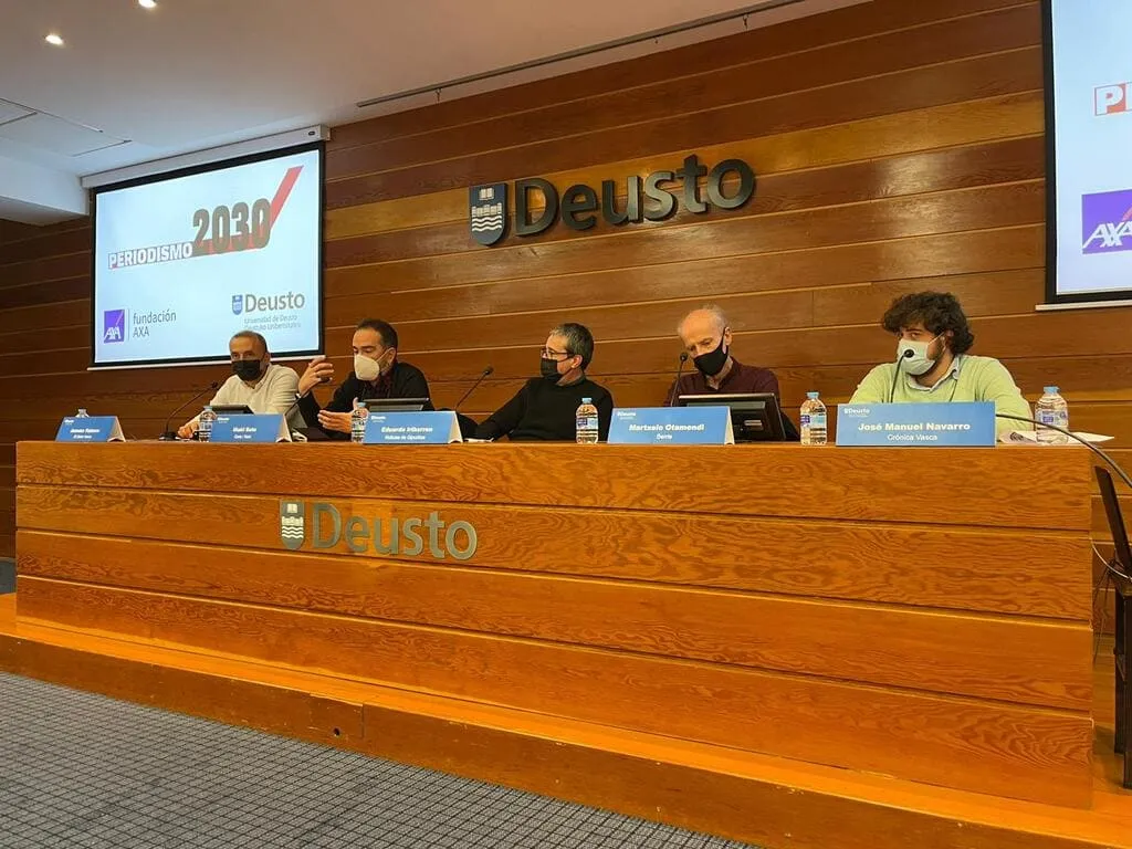 El pasado jueves 31 de marzo se realizaron las dos mesas redondas en colaboración de «Periodismo 2030» junto a la Universidad. En el salón de grados del campus de San Sebastián se formó una atmosfera especial donde los distintos invitados discutieron acerca de los retos del periodismo y su futuro ante las atentas miradas de los estudiantes de Comunicación.