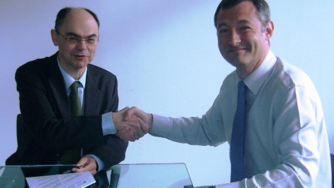 José Ängel Achón e Iñigo Kortabitarte durante la firma del convenio