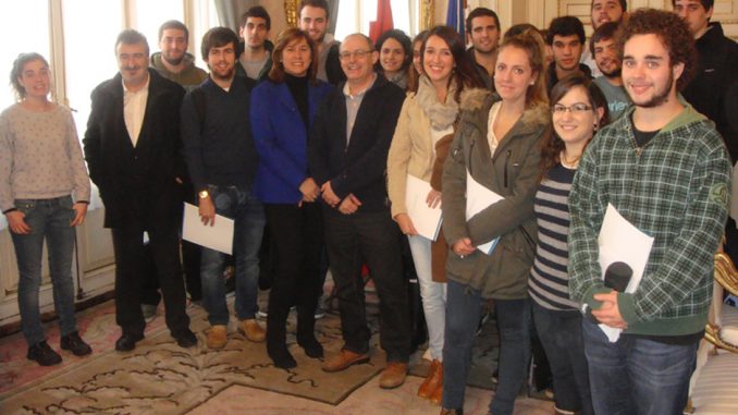 Alumnos de 4º curso de la Facultad de Comunicación, asistieron a una rueda de prensa que ofreció el Alcalde de San Sebastián, Juan Karlos Izagirre, en el Ayuntamiento de la capital donostiarra, con motivo del Encuentro Internacional de ciudades destruidas por la guerra que se celebró en el Palacio del Kursaal la pasada semana. Esta actividad corresponde a la parte práctica dentro de la asignatura Taller Audiovisual, impartida por los profesores Rosa Díez Urrestarazu y Mikel Urretavizcaya.