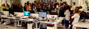 Los alumnos de segundo de Comunicación y primero de Comunicación y Derecho, visitaron el lunes, 30 de noviembre, las instalaciones del El Diario Vasco acompañados por Javier Bienzobas, profesor de la asignatura Principios de Comunicación Gráfica y diseñador-infógrafo del periódico. La visita fue de noche, por lo que los estudiantes pudieron ver la rotativa en funcionamiento y la redacción a la hora del cierre.