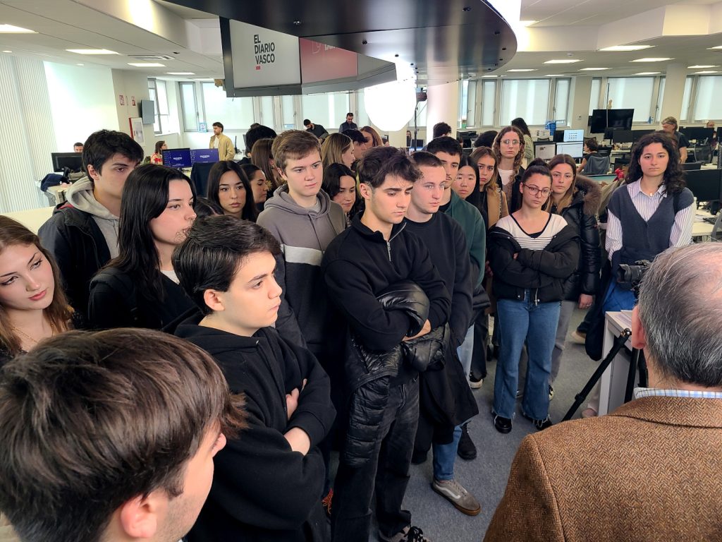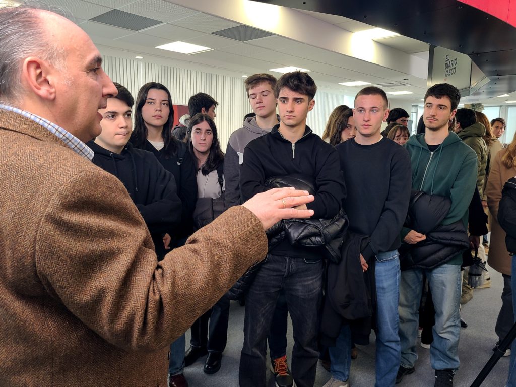 Posteriormente el grupo de estudiantes también tuvo ocasión de visitar las instalaciones del periódico de la mano de Javier Bienzobas, profesor de la asignatura Principios de comunicación gráfica y diseñador e infógrafo en El Diario Vasco.